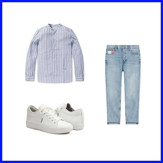 데님 팬츠와 화이트 운동화를 매치해 볼까 :)