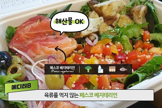 페스코 베지테리언은 육류를 제외한 모든 음식을 먹는 채식주의 유형입니다. 해산물이나 동물의 알, 유제품을 먹을 수 있죠. 앞서 말씀드린 채식 유형에 비해 비교적 난도가 낮은 편입니다. 사람에 따라 유제품을 먹지 않는 경우도 있는데요. 비건과 락토, 오보, 락토 오보와 함께 채식주의자 5가지 유형에 속하는 준채식자입니다.