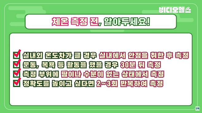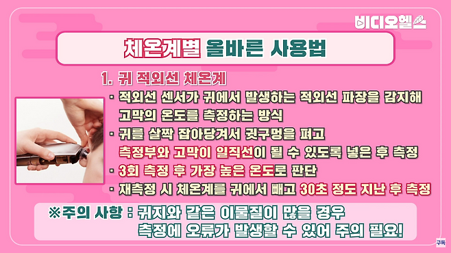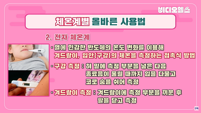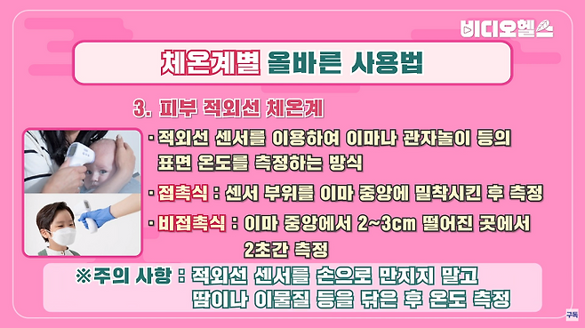 감염병 사태로 체온계는 필수품이 되었습니다. 하지만, 체온계를 잘못된 방법으로 사용하면 치료 시기를 놓칠 수 있는데요. 체온계의 종류에 맞는 올바른 사용 방법을 알아볼까요?