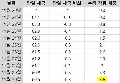 #1. 몸무게가 빠졌다. 10일 동안 -3.6kg 감량 성공