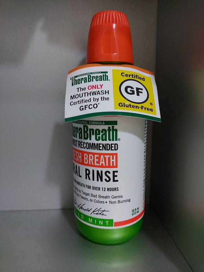 첫 번째로 입냄새! 이게 어쩔 수가 없더라고요. 음식을 안 먹고 물만 마시니까. 혀에 백태가 끼고 아무리 양치를 해도 입냄새가 나요. 그래서 저는 입냄새에 만능으로 알려져 있는 이 가글 약으로 '냄새가 나나?' 싶을 때마다 화장실에 가서 가글을 했어요. 이건 음식 섭취를 하게 되면 자연스럽게 사라지는 현상이라고 해요. 이때도 입냄새 걱정에 껌을 씹거나 하면 안 됩니다. 단식 중엔 첨가물이 들어간 모든 것들이 좋지 않거든요.
