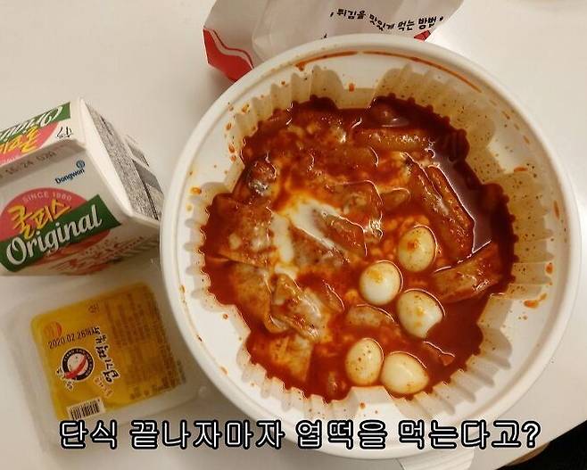 그런데 친구 왔다고 단식 끝나자마자 죽 먹을 거라고 했으면서 엽떡을 시켜 먹었냐고요?