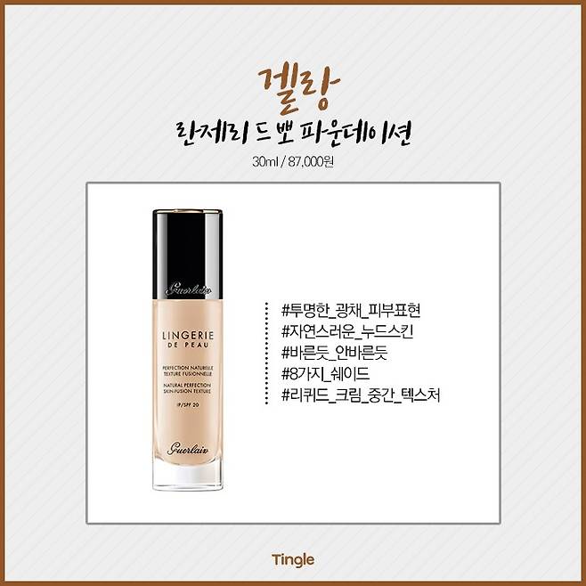 섬세한 피부 표현을 위한 겔랑 파운데이션!피부 위에 얇게 발려 피부 톤과 결을 정리해주고 잡티들도 적당히 커버해서 윤기나고 매끈한 피부 표현에 좋아요.
