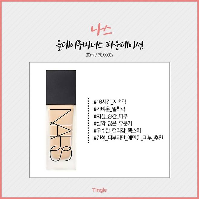 무너지지 않는 베이스 메이크업을 위한 나스 파운데이션!장시간 무너짐 없이 뽀송뽀송한 베이스 메이크업 상태를 지켜주는데요.