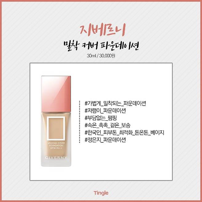 유명 브랜드의 저렴이로 소문난 지베르니 파운데이션!드럭스토어에서 파운데이션 1위를 차지한 제품답게 가성비 대비 최고의 만족도를 자랑해요.
