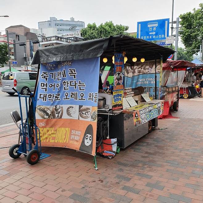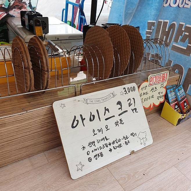 도착해 보니 노릇하게 구워진 와플들이 날 기다리고 있어서