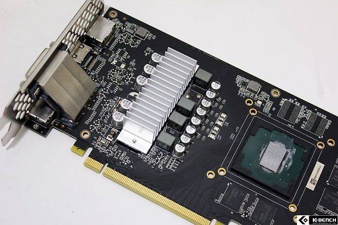 또한, 쿨러 내부에는 GPU 칩셋을 덮고 있는 히트 씽크와 3개의 구리 재질의 히트파이프가 3개 탑재되어 있어 쿨링 효율을 높이고 있다.