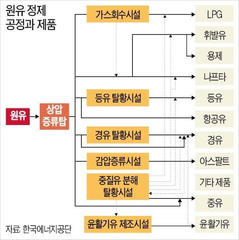 끓는점 차이 이용해 원유를 LPG·휘발유·경유 등으로 분리