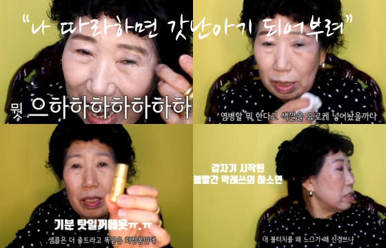 “오늘 포인트는 좀 어려 보이는 것이 포인트야. 여러분들 따라서 하지 마세요. 너희들이 나 따라서 하면 너무 어려 보여. 갓난아기 되어 부려” 마치 손녀에게 말하듯 친근하고 꾸밈이 없는 것이 박막례 할머니의 특징이네요.