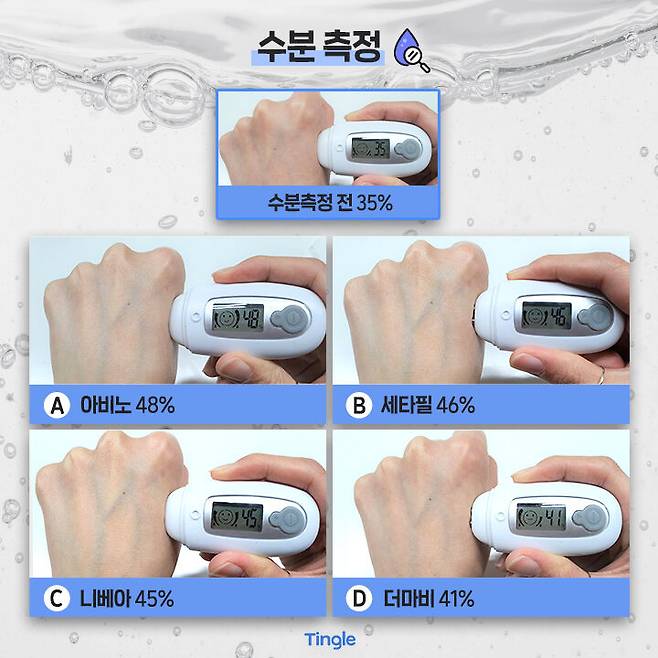 각 제품을 바르기 전, 후 수분력을