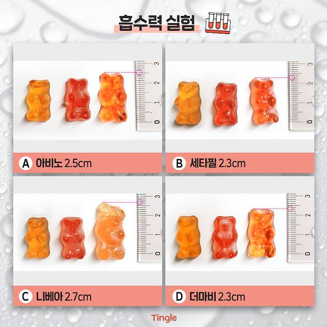 다음은 귀여운 젤리를 이용한 흡수력 실험이야.