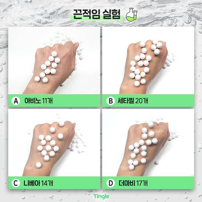 B 세타필은 20개로 가장 끈적임이 높은 제품!