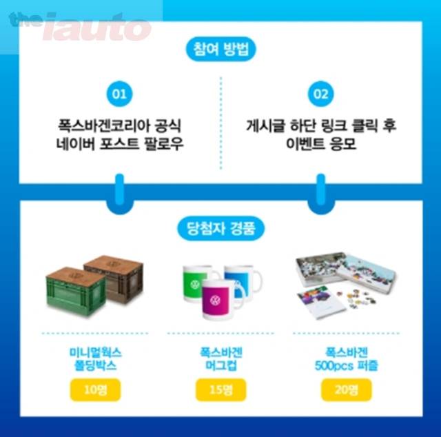 추첨을 통해 총 45명에게 차박 및 캠핑 필수 굿즈인 ‘폭스바겐 X 미니멀웍스 폴딩박스 (10명), 폭스바겐 겨울 시즌 굿즈인 500pc 퍼즐(20명) 및 뉴 폭스바겐 로고가 각인 된 폭스바겐 머그컵(15명)을 증정한다.