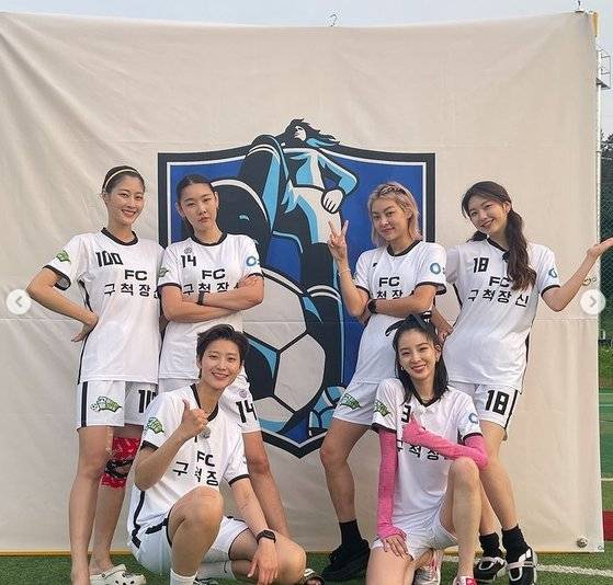 공개된 사진엔 유니폼을 입고 옹기종기 모인 한혜진, 이현이, 송해나, 아이린, 차수민, 김진경의 모습이 담겼다. 축구선수로 변신한 모델들의 화기애애한 분위기와 신선한 조합이 호기심을 자극한다.