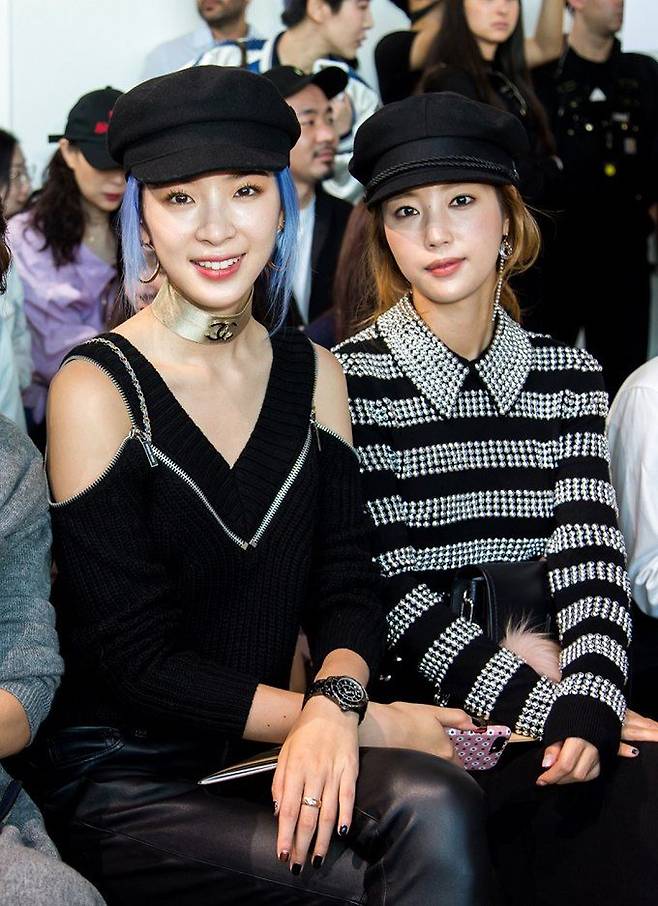 아이린 역시 뉴스보이캡을 착용해 멋스러움을 자아냈으며, 어깨에 지퍼 절개 장식이 들어간 블랙 니트와 레더 팬츠로 시크미 넘치는 룩을 연출, 또 볼드한 메탈 초커를 포인트로 착용해 관능적인 분위기를 완성했다.