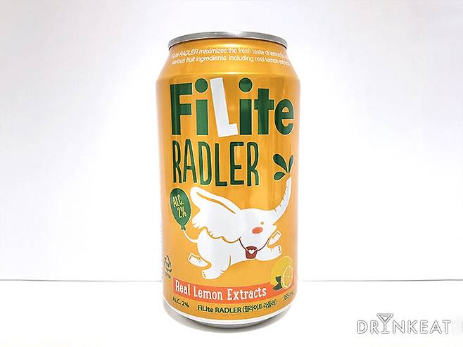 저렴한 가격으로, 성인이라면 누구나 부담 없이 구입해 마셔볼 수 있는 필라이트 레몬 맥주. 앙증맞은 빨간색 소풍 가방을 멘 코끼리가 그려진 ‘필라이트 라들러’의 도수는 2%로 아주 낮죠.