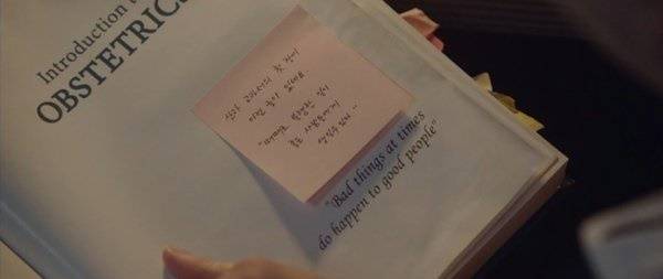이 문구는 석형이 보는 의학 서적에 붙여진 메모지에 쓰여 있던 것이다. 석형은 과거의 어떤 상처를 누군가 보내준 이 문구로 달랬을 것이며, 그 위로를 다시 깊은 아픔을 느끼는 김수정 산모에게 전했던 것이다. 살아가면서 만나는 수많은 불행들에 우리는 슬퍼하며 자책한다. 김수정 산모는 아이를 살리지 못했다는 죄책감에 감당하기 어려운 죽음을 자신을 탓으로 돌리며 아파했을 것이다.