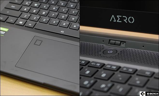 그런면에서 요즘 노트북에는 필수적인 지문 보안이 기가바이트 AERO 17 HDR YD i7 모델에는 터치패드에 제공된다.
