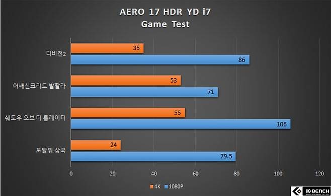게이밍 성능을 살펴보았으며, 4K 해상도를 지원하는 디스플레이인만큼 일반적인 해상도인 FHD와 4K해상도를 둘다 체크해보았다.