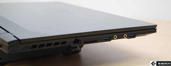먼저 좌측면에는 RJ45, 랜포트를 시작으로 최신 UHS-II SD 카드 리더기, USB 3.2 타입 A 포트 2개, 분리된 헤드폰, 마이크 포트가 제공되는 모습이다.