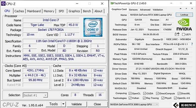 기가바이트 AERO 17 HDR YD i7 모델은 본격적으로 탑재되기 시작한 NVIDIA의 RTX 3080 랩탑 모델을 채용했다.