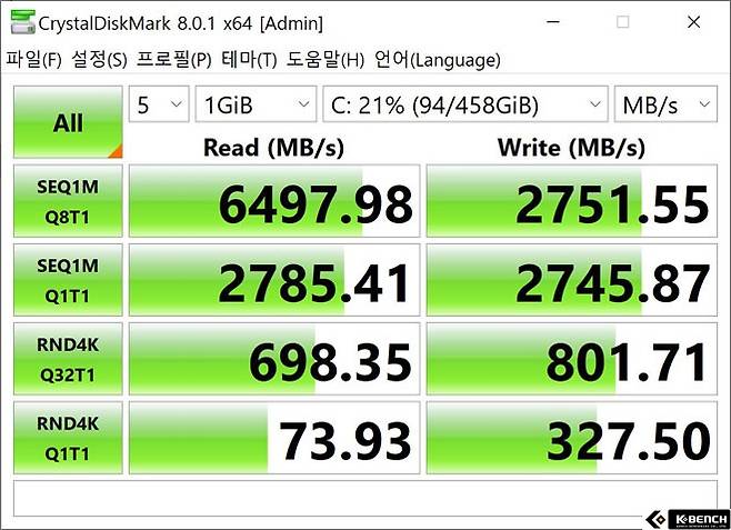 특히, OS가 설치되어 있는 512GB 스토리지의 경우에는 PCIe Gen4를 지원하는 제품으로 매우 빠른 성능을 보여줬다.