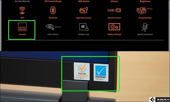 X-rite Pantone 인증 캘리브레이션이다. 공장 출고시 적용되어 있으며, 소프트웨어 컨트롤 센터에서 ON/OFF가 가능하다.