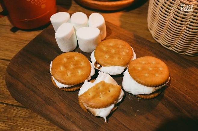 불꽃 크기는 다이얼로 조절할 수 있다. 최대한 크게 해서 마시멜로를 구워 먹었다. 초콜릿 과자를 사다가 사이에 구운 마시멜로를 끼우면 아주 간단하게 스모어를 즐길 수 있다. 랜턴의 가격은 6만 9,000원.