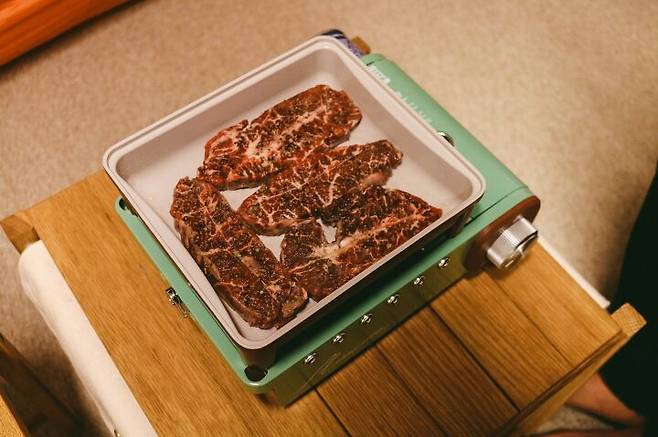 아무튼 구이바다를 사고 캠핑의 질이 달라졌다는 말을 질리도록 들었다. 그래서 이번에 하나 샀다. 구이바다는 쉽게 말하면 팬과 버너 세트인데, 가지고 있으면 구이, 탕, 볶음, 찜, 라면, 직화구이까지 대부분의 캠핑 요리를 할 수 있게 된다. 불이 하나인 일반 버너와 달리 팬이 전체적으로 뜨거워진다. 덕분에 뭐든 빨리 구워지고 끓여진다.