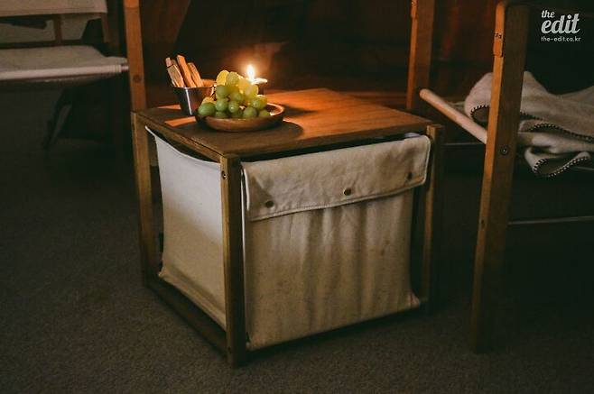 먼저 거실에 있는 큰 가구를 치운다. 텐트를 펼칠 자리만 마련하면 되니까 식탁과 소파를 한쪽으로 밀어서 해결했다. 텐트가 없다면 상상력을 발휘해 잠자리를 만들자. 어렸을 때 자주 하던 것처럼 의자 두 개 사이에 이불을 걸쳐 모양만 내도 된다. 쿠션과 베개로 고정해 두면 제법 아늑하다. 침낭이 있다면 그것만 가져와도 된다. 마침 요새 비박이 트렌드다.