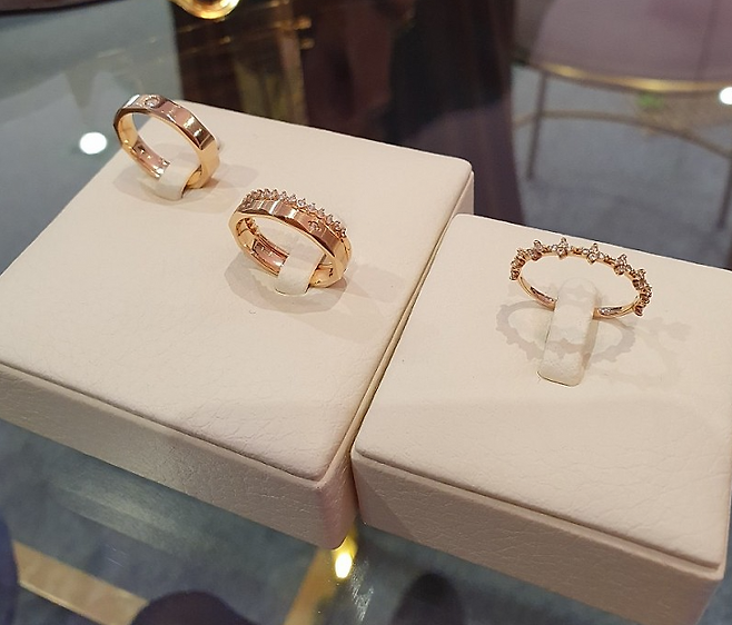 하람반지를 하려고 했던 큰 이유중 하나는 여자 반지에 다이아가 많았고 다이아몬드 표면을 만져도 걸리는게 없이 매끈했다. 보석이 옷에 걸리거나 표면이 울퉁불퉁하면 반지를 끼고 싶지 않을텐데 진짜 넘나 매끈했다. 그래서 애기 엄마들도 부담 갖지 않고 낄 수 있다고 한다 표면이 매끈해서 애기들 피부에 상처를 줄 일이 없기 때문!