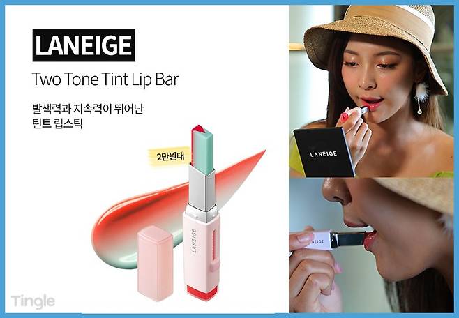 선명한 틴트 효과와 촉촉하고 부드러운 입술로 가꿔주는 립밤 효과를 동시에 볼 수 있는 라네즈 투톤 틴트 립바!