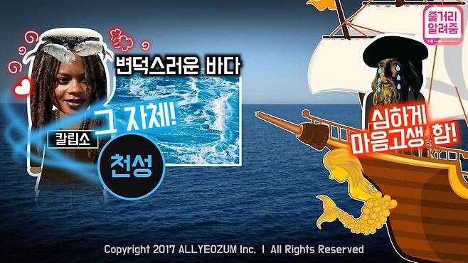 여기, 바다의 여신 “칼립소”와 사랑에 빠졌던 해적 “데비 존스”가 있습니다. 변덕스러운 바다 그 자체였던 칼립소의 천성 때문에, 심하게 마음고생을 했었던 데비 존스는,
