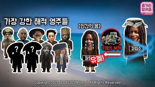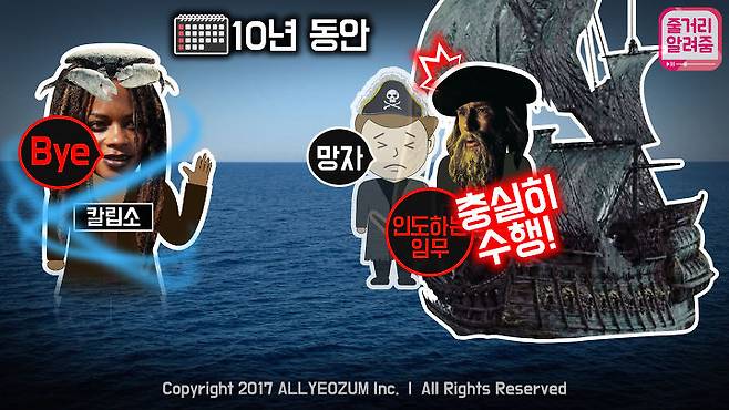 그 당시 가장 강했던 9명의 해적 영주들에게, 지금 것 폭풍우와 소용돌이로 공포의 바다를 만들어 왔던 칼립소를 봉인할 수 있는 방법을 알려주었는데요.
