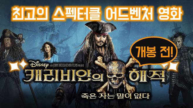 역대급 존재감의 오리지널 캐릭터(헥터 바르보사, 윌 터너)와 신규 캐릭터(헨리 터너, 카리나 스미스)가 이 모든 궁금증들을 해결해 주는 한편, 죽음마저 집어삼킨 최악의 적 캡틴 살라자르와 잭 스패로우가 펼치는 사상 최대 규모의 해상 전투까지 원 없이 볼 수 있는 최강 액션 어드벤처 영화 <캐리비안의 해적: 죽은 자는 말이 없다>의 개봉일은 2017년 5월 24일입니다.