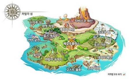 아무튼 그래서 이 정도 소박한(?) 컨셉으로 온라인 게임 트릭스터는 탄생하게 되었죠. 카발라 섬의 처음 공개된 면적과 지역들은 해안과 부둣가, 화산지대 등 대여섯 곳에 불과했습니다. 물론 서비스를 거듭하고 인기를 얻게 되면서 콘텐츠 분량도 팍팍 늘어나고 캐릭터는 성장 모델은 확장됐으며 카발라 섬에 여러 부속 섬들이 오픈되기도 했습니다.