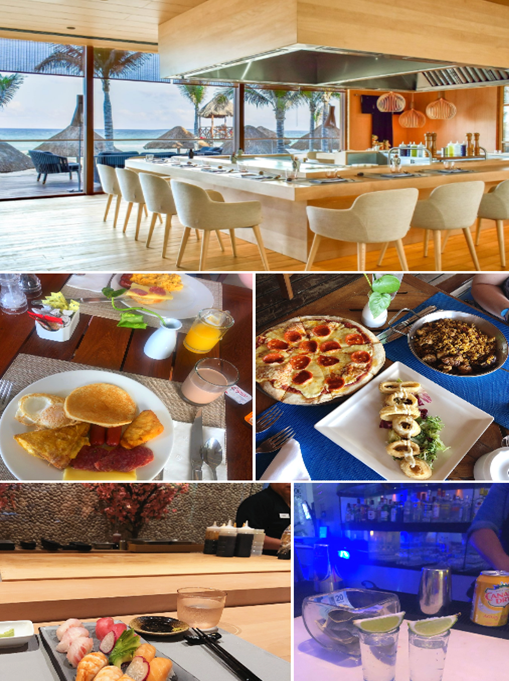 일식 레스토랑에서는 한국에서도 들어보지 못한 일식 메뉴들이 나열돼있었다. 올인클루시브다 보니 아침-점심-저녁 매번 레스토랑을 골라 환상적인 음식들을 맛볼 수 있었다. 주류도 샷부터 형형색색의 칵테일까지 모두 24시간 마련돼있어서 스스로를 자제시켜야 했다.