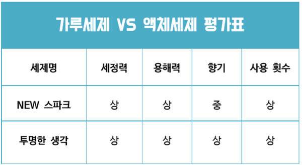 이상으로 가루세제와 액체세제를 이용한 세탁 실험을 마쳤다. 실험 결과, 두 세제 모두 완벽에 가까운 세정력을 보여주었다. 어떤 것이 더 좋다 혹은 어떤 것이 더 나쁘다고 말할 수가 없을 정도로 말이다. 그렇다면 가루세제와 액체세제 중, 어떤 세제를 선택하는 것이 더 좋을까?