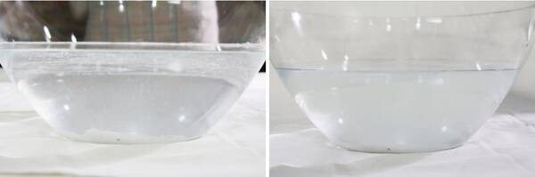 우선 적당량의 가루세제를 물에 넣어보았다. 처음에는 가루세제가 바닥에 가라앉는가 싶더니, 이내 대부분 물에 녹아내렸다.