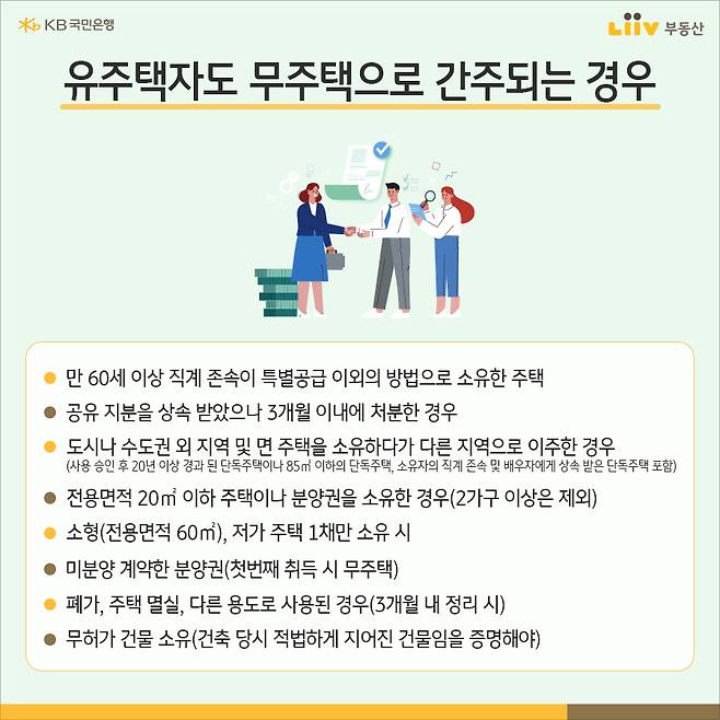또 집이 있더라도 무주택으로 간주되는 경우도 있는데요, 이는 주택 소유를 판단하는 기준을 달리 적용해 무주택자로 간주되는 경우입니다.