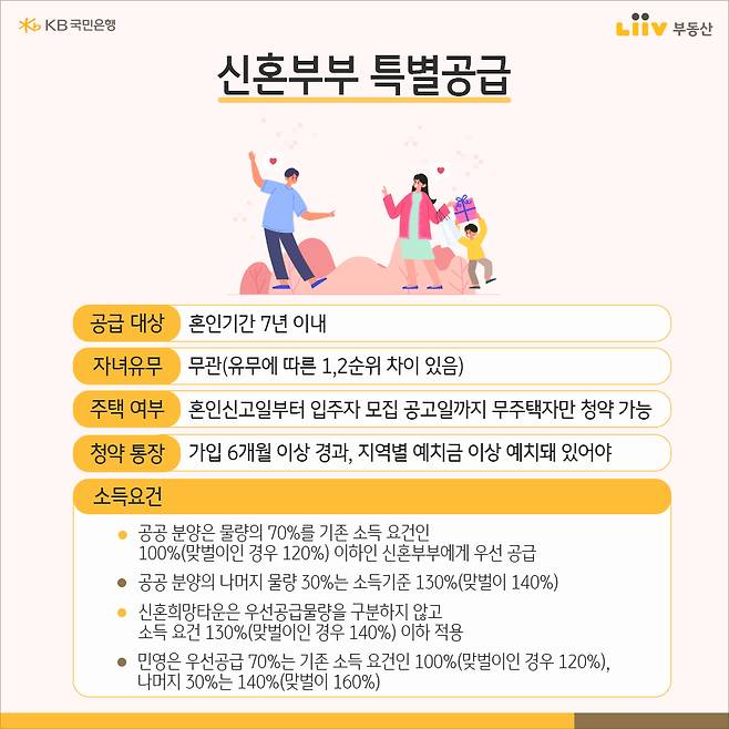 신혼부부 특별공급의 경우 부부 합산으로 소득을 따지게 되는데, 이때 소득 기준을 잘못 계산해 취소되는 경우가 있습니다. 신혼부부 특별공급은 우선공급(전체 물량의 70%)과 일반공급(30%)로 나뉘는데 배우자 소득이 없는 경우 3인 이하 가족은 기준소득 603만원 이하면 우선 공급에 청약할 수 있습니다. 이 때 부부 합산 소득은 세 전 소득을 기준으로 하며 휴직기간 이어도 정상 근무 시 급여로 계산해야 합니다. 소득 산정 시 아동수당 월 10만원은 소득으로 산정됩니다.