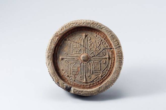 낙랑군의 예관禮官이라는 관직을 알려주는‘낙랑예관’글자를 막새면 중심부에 새겨 넣고 주위에 구름무늬[雲氣文]를 채운 문자기와다. 중국의 영향을 받아 형태나 제작기법이 중국과 동일하다(출처: 국립중앙박물관).