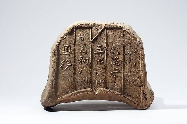 조선 시대 기와는 장식이나 미적인 측면보다 기능에 중점 뒀다. 이전 시기에는 막새면을 직각으로 붙였으나 조선 시대에는 연목의 부식을 방지하기 위해 둔각을 이룬다. 장식을 위한 연꽃무늬[蓮花文]는 사라지고 제작과 관련한 명문銘文을 넣었다. 기와에 새겨진 글귀는‘건륭 20년(1775)에 만들어진 것’이라는 뜻이다(출처: 국립중앙박물관).