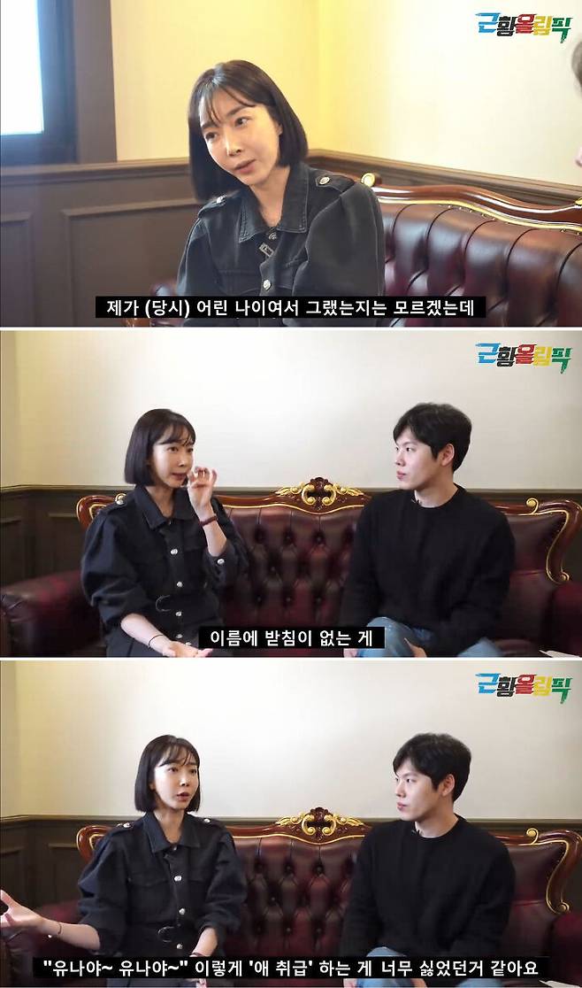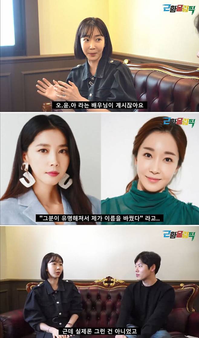 제가 포털 사이트에 한번 검색을 해 봤더니, '오윤아'라는 배우 님이 계시잖아요. 그 분이 유명해져서 제가 이름을 바꿨다는 식으로 나와있더라고요. 근데 실제론 그런 게 아니에요. 사실 오윤아님하고 해프닝이 많기는 해요. 왜냐면 이름도 비슷하고 나이도 1살 차이 밖에 안 나기도 하고... 한참 일이 많았을 때 돈이 통장에 서로 반대로 입금된 적도 있었어요. 이제 다시 오유나로 활동합니다. ㅎㅎ 절대 오윤아님 때문에 바꾼 게 아니라, 개인적인 사유로 바꿨던 거에요ㅎㅎ