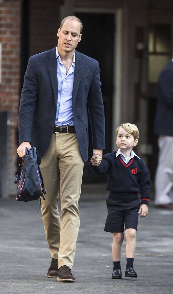 샬럿 공주는 이날 아침 엄마, 아빠, 오빠와 함께 네이비 교복을 입고 첫 등교했다.