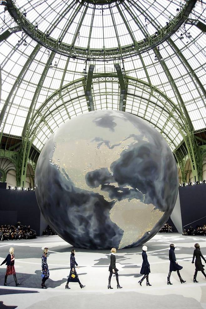 22. 2013 가을/겨울 샤넬 쁘레따뽀르떼 컬렉션의 모델들은 런웨이 위 거대한 지구를 돌았다.