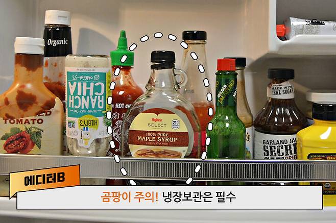 메이플 시럽 개봉 후에는 반드시 냉장 보관해야 합니다. 방부제가 들어있지 않아 개봉 후 실온에 두면 곰팡이가 생기기 쉬워요. 곰팡이를 덜어내고 먹어도 된다고는 하지만 이왕이면 냉장고에 넣어주세요. 냉장 보관을 하더라도 1년 안에 먹어야 하고, 개봉하지 않은 메이플 시럽은 냉동실에서 영구 보관 가능하답니다.