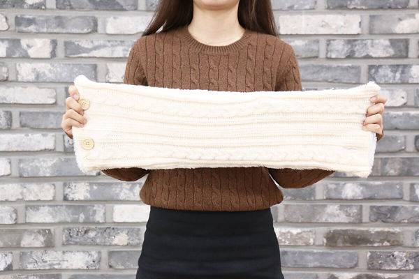 히트넥 넥워머의 디자인을 꼼꼼히 살펴보자. 전체적으로 니트 재질로 되어 있고 양 끝에 히트넥 넥워머를 고정시킬 수 있는 단추 2개가 있다. 목에 두르기에 적당한 60cm의 길이에, 목으로 바람이 새어 들어오지 않게끔 턱까지 깔끔하게 감싸준다. 히트넥 넥워머를 두르면, 목 부분은 털로 되어 있어 까슬까슬함 없이 부드러운 감촉을 선사한다. 보온성에 착용감까지 높였다.