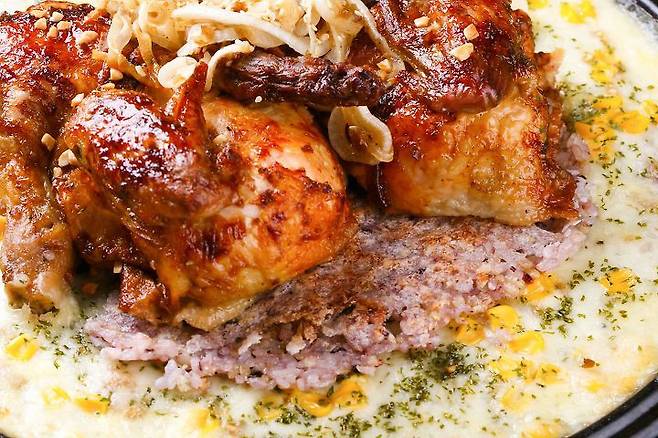 통닭과 치즈 그리고 누룽지가 만나면 마치 밖에서 사 먹는 듯한 기분을 낼 수 있다. 우선 통닭 한 마리를 준비한다. 되도록 튀기지 않고 구운 통닭을 사용하는 것이 좋다. 프라이팬에 밥을 얇고 고르게 펴 누룽지를 만든다. 누룽지에 옥수수콘을 가득 올린다. 취향에 따라 적당량의 마요네즈를 더하고 그 위에 모짜렐라 치즈를 듬뿍 뿌린다. 통닭을 올리고 궁중팬으로 덮어 약불에 5분 정도 익힌다. 먹음직스러운 통닭과 잘 녹은 치즈 때문에 환상적인 비주얼을 자랑한다.
