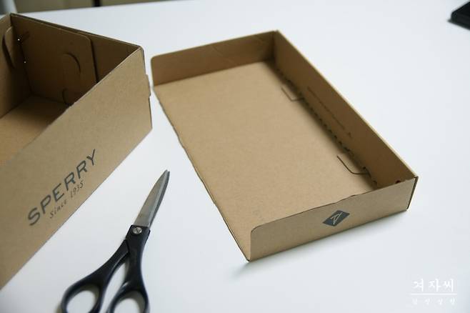 신발 박스의 뚜껑부분을 잘라내면 내용물을 분류해서 정리할 때 유용하게 쓸 수 있습니다.